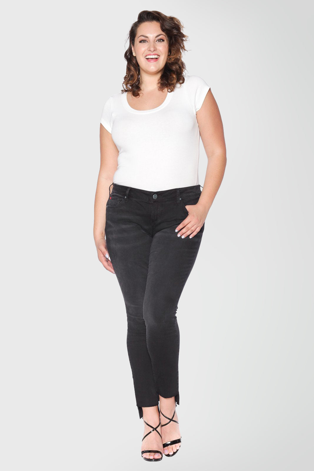 With a mid-rise and 31" inseam, the Skinny Step Hem works really accentuates ankle booties or heels. Dress yourself in an everyday jean that can transition from day to night with ease. Love your Body. Fall in Love with the Skinny Step Hem.