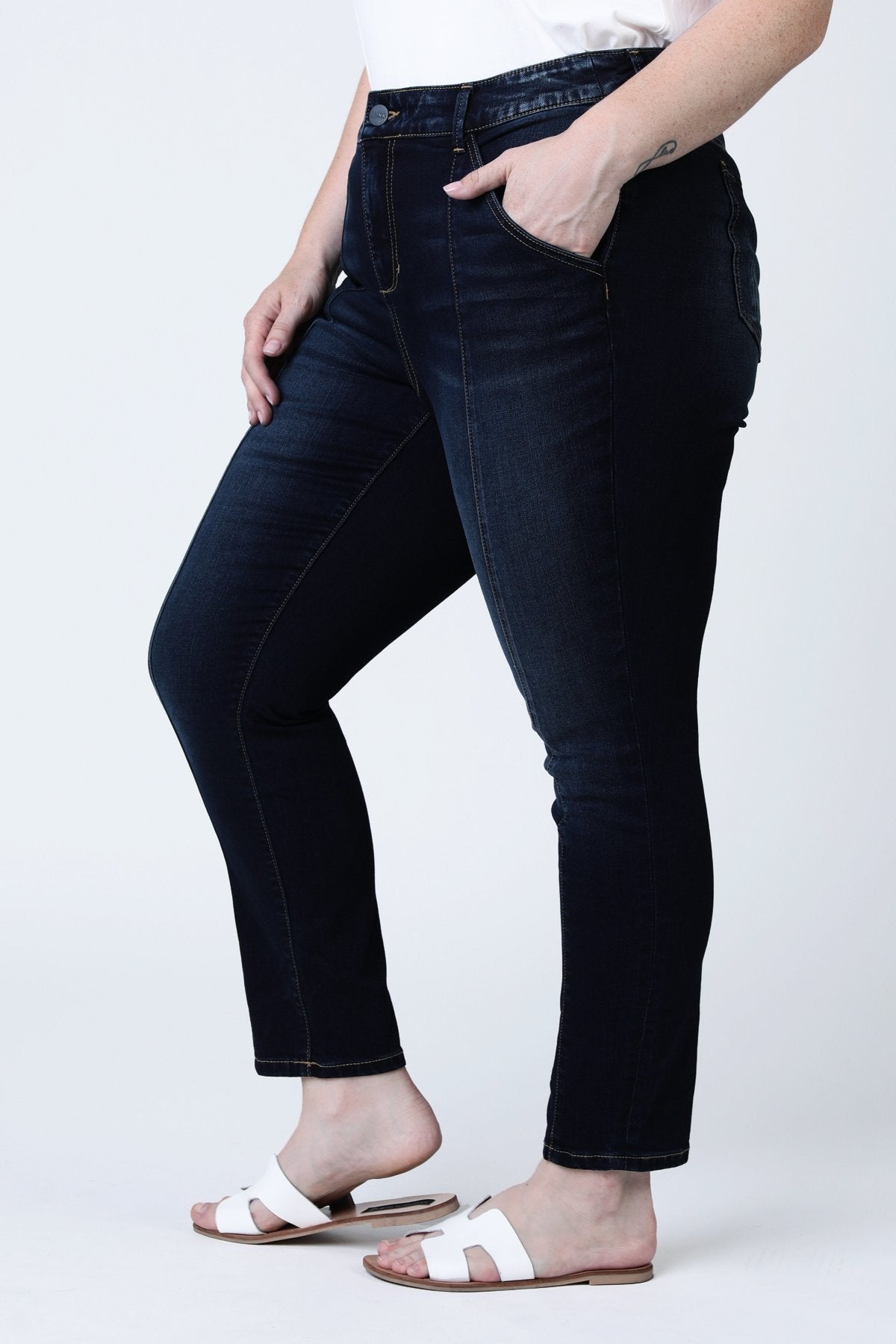 The New Pintuck High Rise Ankle delivers a sleek fit with smooth lines and a modern 11 3/4" rise. Designed with you in mind, the sleek denim style features a shorter, 28" inseam with intricate detailing.