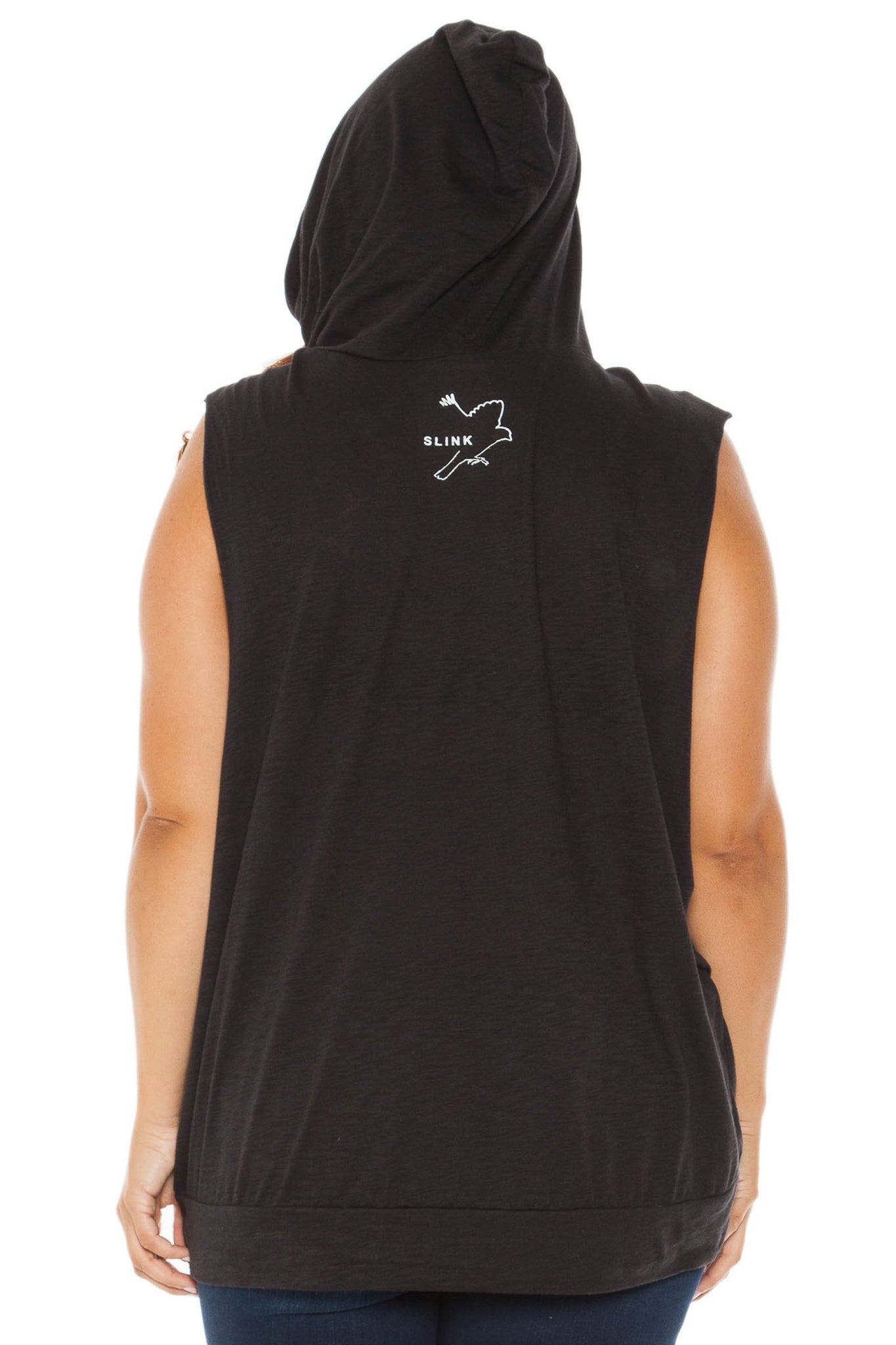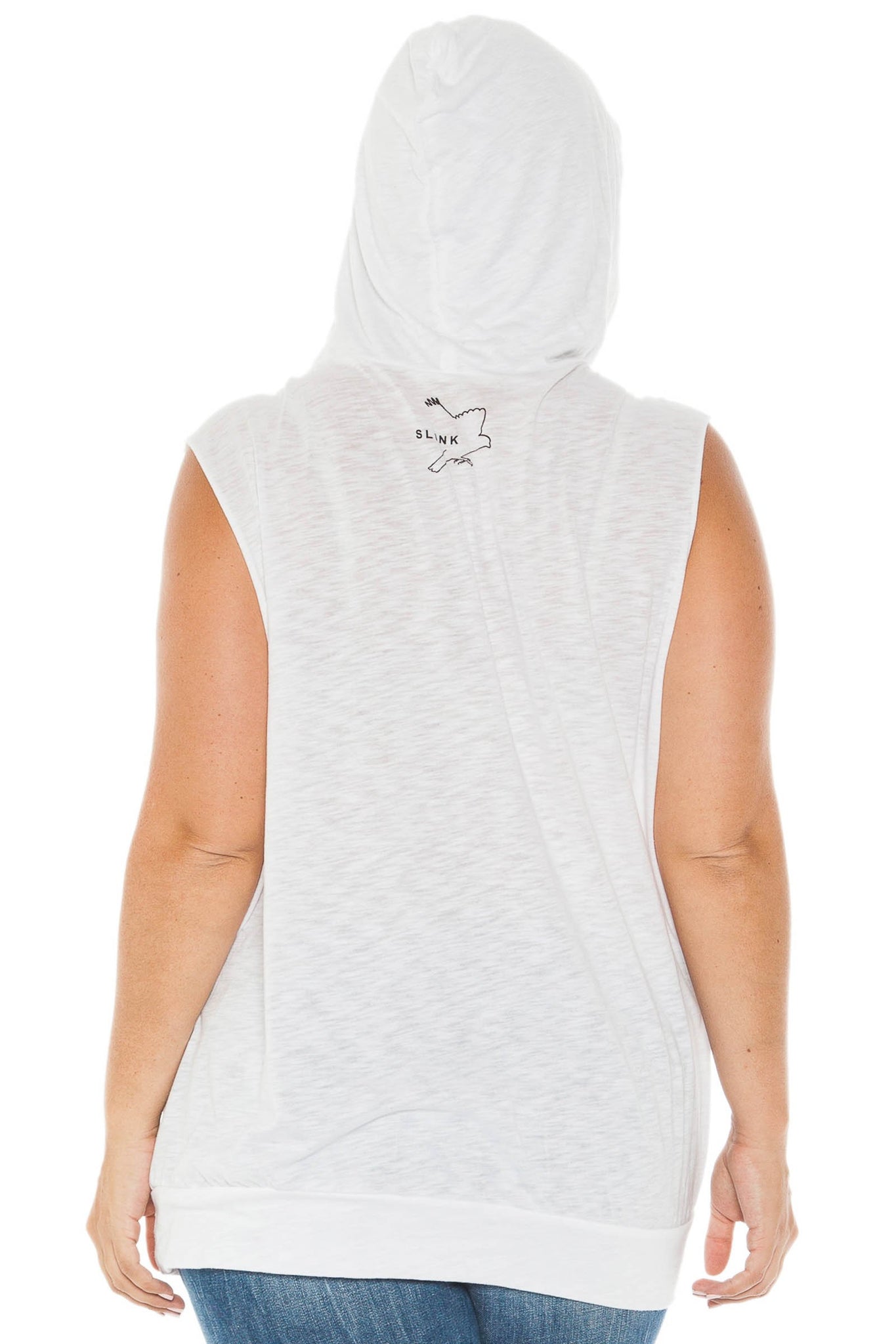 The Slink it Hoodie delivers a sleeveless hooded sweatshirt with a modern tunic length bodice and front pocket details. This ultra soft luxury basic delivers a lightweight cotton/modal blend fabric and the comfort of stretch.