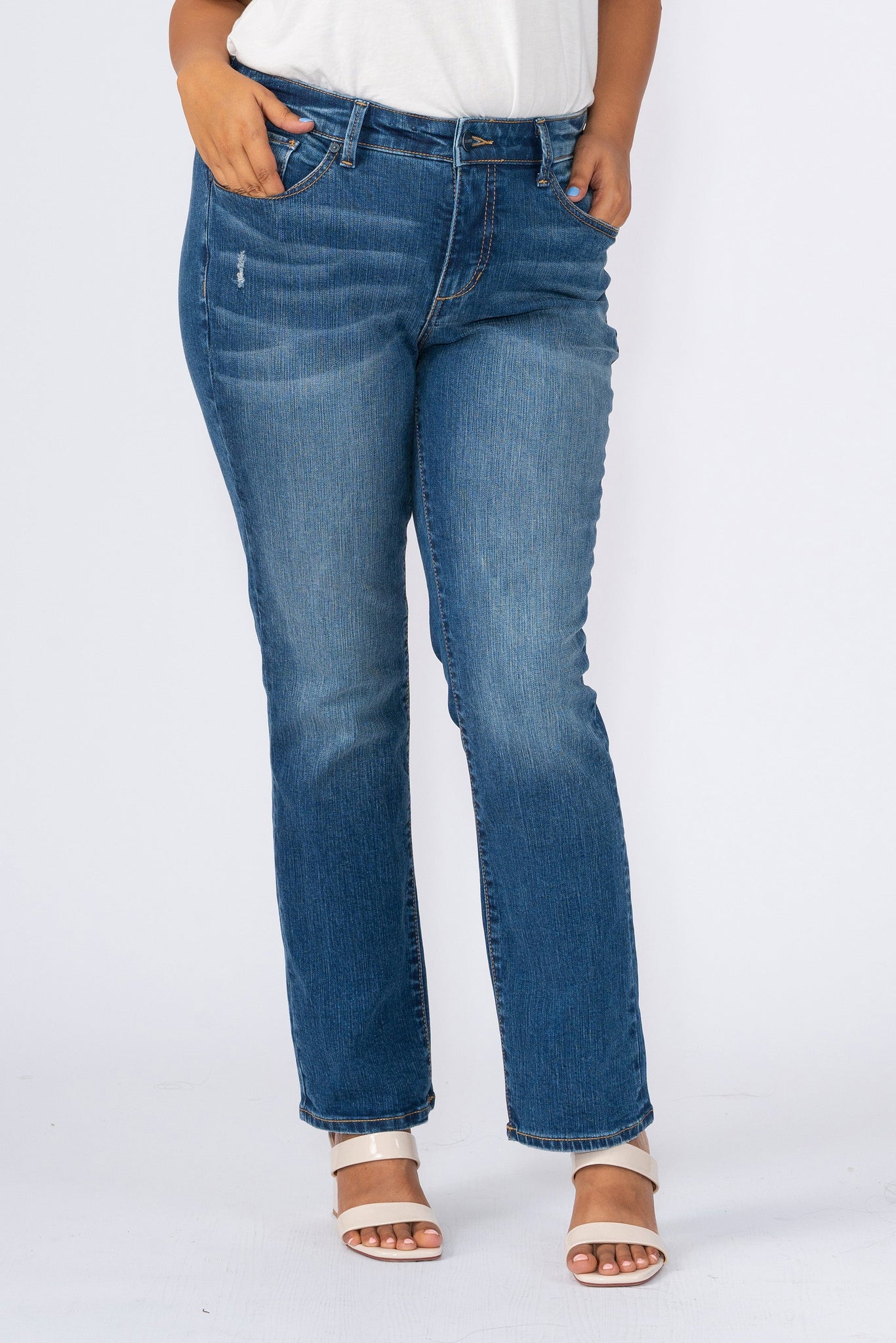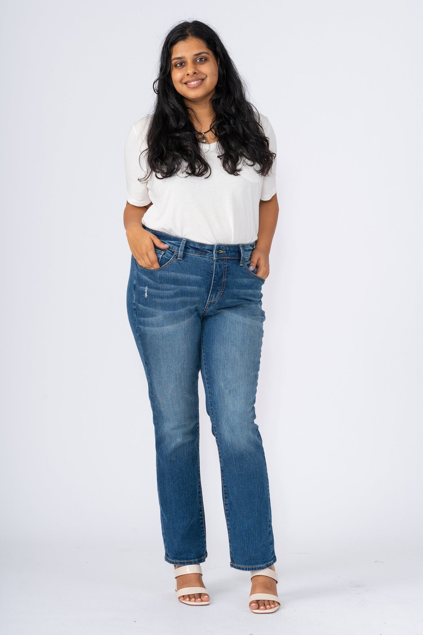 The Straight Leg delivers a sleek and modern fit throughout with smooth lines and a modern high-rise. Designed with you in mind, the sleek denim style features a modern, 32" inseam - perfect for showcasing those new ankle booties or strappy pumps.