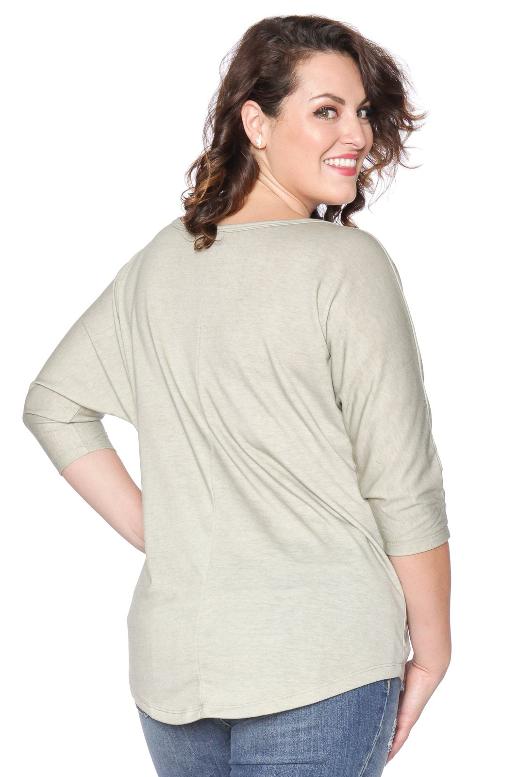 The 3/4 Dolman Sleeve Tee delivers a modern scoop neckline and ultra chic high-low hemline. This slightly sheer tee is soft to the touch with a lightweight modal fabric that features the comfort of stretch.